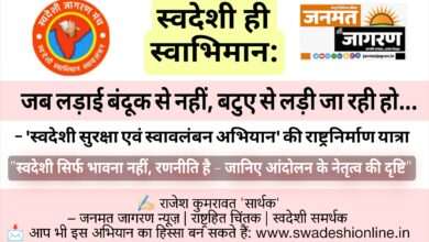 स्वदेशी ही स्वाभिमान: जब लड़ाई बंदूक से नहीं, बटुए से लड़ी जा रही हो… “स्वदेशी सिर्फ भावना नहीं, रणनीति है – जानिए आंदोलन के नेतृत्व की दृष्टि”