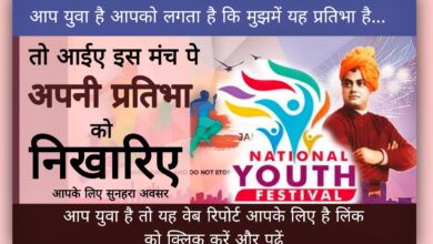 राष्ट्रीय युवा उत्सव-2023 -जिला एवं संभाग स्तर पर युवा उत्सव का वर्चुअल आयोजन होगा, प्रतिभागी बनने हेतु अपने प्रदर्शन के…