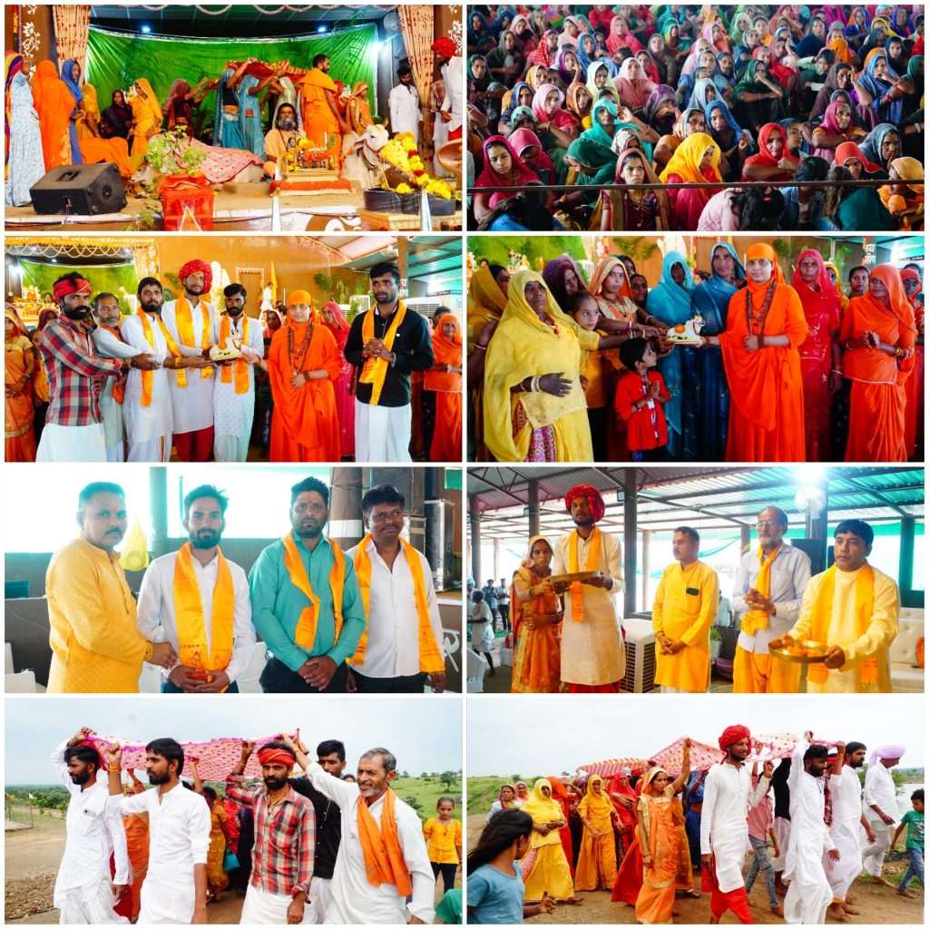 🚩121 वे दिवस पर चुनरी यात्रा मध्यप्रदेश के रतलाम जिले से :: एक वर्षीय गोकृपा कथा ग्राम के 121 वे दिवस पर चुनरी यात्रा रतलाम जिले के उपरवाड़ा में स्थित त्वरित गोशाला की और से गो अभयारण्य मालवा के गोसेवा के सह मुखियाजी जितेन्द्र सिंह राजपूत ऊपरवाड़ा ( रतलाम) ने धर्मपत्नी अन्नपूर्णा एवं गो अभयारण्य के मुखियाजी शंकराराम के नेतृत्व में गो अभयारण्य के समस्त ग्वाल ग्वालिन ने अपने देश,राज्य एवं ग्राम के जन कल्याण के लिए गाजे बाजे के साथ कथा मंच पर विराजित भगवती गोमाता को चुनरी ओढ़ाई एवं गोमाता का पूजन कर स्वामी गोपालानंद सरस्वती महाराज से आशीर्वाद लिया और अंत में सभी ने गो पूजन करके यज्ञशाला की परिक्रमा एवं गोष्ठ में गोसेवा करके सभी ने गोव्रती महाप्रसाद ग्रहण किया।