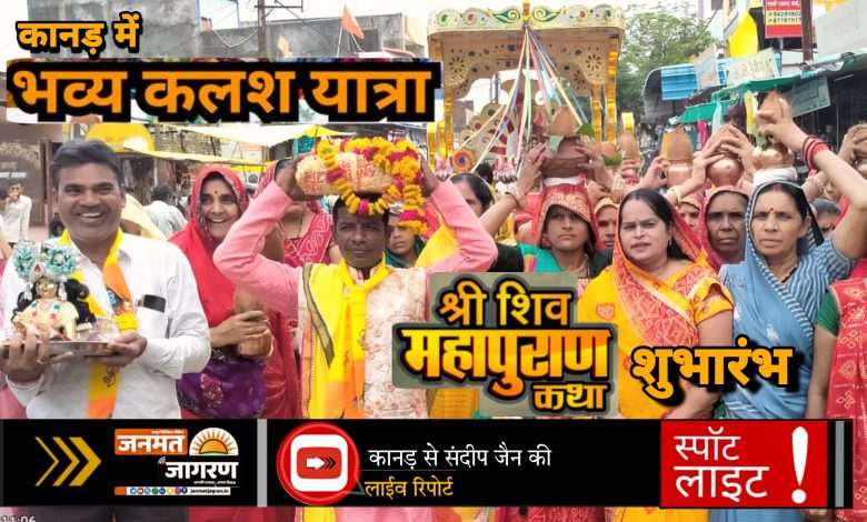 जनमत जागरण @ कानड़ से संदीप जैन की रिपोर्ट। नगर में आज बुधवार से सात दिवसीय शिव महापुराण कथा शुरू हुई कथा के पूर्व नगर में बैंड बाजों के साथ कलश यात्रा बजरंग मोहल्ला स्थित श्री बड़ा राम मंदिर से प्रारंभ हुई जो प्रमुख मार्गो से होते हुए पुराना बस स्टैंड स्थित कनकेश्वर महादेव मंदिर पहुंची जहां कनकेश्वर महादेव का जल अभिषेक किया गया। इसके बाद वहां से चलते हुए माताजी रोड स्थित मांगलिक भवन पर पहुंची। यात्रा में श्री शिव महापुराण सिर पर लिए यजमान चल रहे थे यात्रा नगर के प्रमुख मार्गों से निकलते हुए कथा स्थल माता जी रोड स्थित मांगलिक भवन पहुची। जहा विधि विधान के पूजन आरती साथ कथा प्रारम्भ हुई। कथा प्रवक्ता पं. शिवम तिवारी गंगा के मुखारविंद से श्रावण माह के अवसर पर भगवान शिव की एवं माता पार्वती की महिमा का गुणगान किया ।