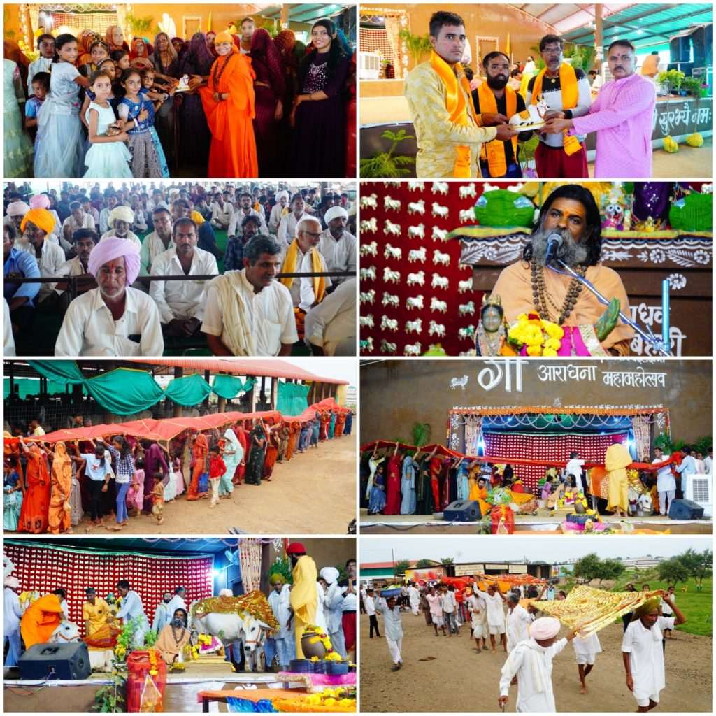 🚩123 वे दिवस पर चुनरी यात्रा राजस्थान के भीलवाड़ा मध्यप्रदेश के आगर जिले से :: एक वर्षीय गोकृपा कथा के 123 वें दिवस पर राजस्थान के भीलवाड़ा जिले की बनेड़ा तहसील के अमरपुरा ग्राम से लालाराम माली,राजू लाल माली एवं श्याम माली एवं आगर मालवा जिले सुसनेर तहसील के जेतपुरा ग्राम से हरिसिंह,पूरसिंह,जोरावर सिंह, प्रेम सिंह, करण सिंह,देवी सिंह,, राघु सिंह,चेतन सिंह,बाबू सिंह, रामसिंह एवं गोविंद के साथ ग्राम के सैकड़ों मातृशक्ति ,युवा, वृद्ध अपने देश,राज्य एवं ग्राम के जन कल्याण के लिए डीजे के गाजे बाजे के साथ भगवती गोमाता के लिए छपन्नभोग लेकर पधारे और कथा मंच पर विराजित भगवती गोमाता को चुनरी ओढ़ाई एवं गोमाता का पूजन कर स्वामी गोपालानंद सरस्वती महाराज से आशीर्वाद लिया और अंत में सभी ने गो पूजन करके यज्ञशाला की परिक्रमा एवं गोष्ठ में गोसेवा करके सभी ने गोव्रती महाप्रसाद ग्रहण किया।