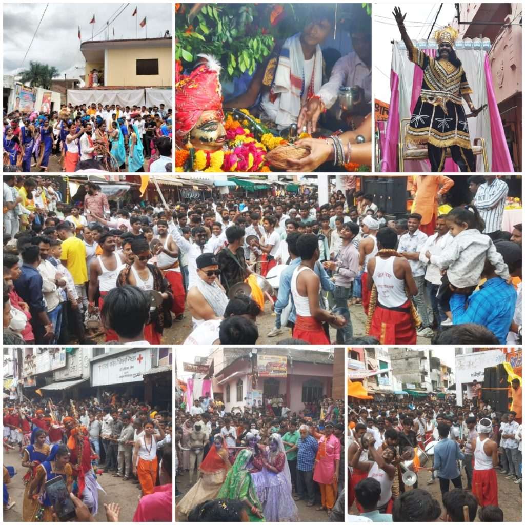 🚩 शिवभक्त मंडल के तत्वाधान में अलसुबह कंठाल नदी के तट पर देवी अहिल्याबाई द्वारा स्थापति नीलकंठेश्वर महोदव और ओंकारेश्वर महादेव मंदिर में महारूद्राभिषेक कर श्रृंगार आरती की गई। उसके पश्चात पुजा के बाद मुखौटे को शिव भक्त मंडल के सदस्यो द्वारा चौसठ माता मन्दिर लाया गया। जहां माँ चौसठ योगिनी की पूजन व आरती के बाद कल्याण जिन से शाही सवारी की शुरूआत की गई। यहा से बाबा आकर्षक झांकीयो के साथ फुलो से सजी पालकी में अपनी प्रजा का हाल जानने के लिए निकले। सुबह 11 बजे शुरू हुई शाही सवारी ढाई किलोमीटर घूमकर रात 8 बजे के करीब नीलकंठेश्वर महादेव मंदिर पहुंची जहाँ महाआरती की गई। जिसके बाद भंडारे का आयोजन हुआ। जिसमें नगर सहित ग्रामीण क्षेत्रो से आए करीब 10 हजार से अधिक श्रद्धालुओं द्वारा भोजन प्रसादी ग्रहण की गई। सवारी का राजनेताओं, विभिन्न सामाजिक एवं धार्मिक संगठनो के द्वारा मंच बनाकर स्वल्पाहर ओर पुष्पवर्षा से स्वागत किया गया। शाही सवारी के दौरान पुलिस प्रशासन सुरक्षा व्यवस्था में पूरी तरह मुस्तेद रहा।