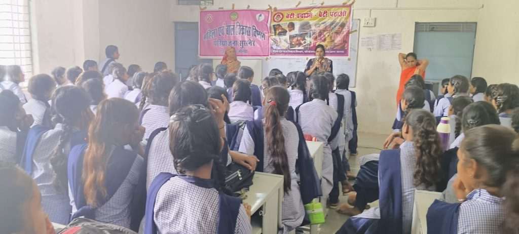 जनमत जागरण @ सोयतकलां:: महिला एवं बाल विकास विभाग द्वारा बेटी बचाओ बेटी पढ़ाओ अभियान के तहत शुक्रवार को सोयतकलां में पी एम श्री एकीकृत शासकीय कन्या उच्चतर माध्यमिक विद्यालय में आयोजित कार्यशाला में बालिका शिक्षा, महावारी स्वच्छता, एनीमिया रोकथाम, और पोषण के महत्व पर जागरूकता बढ़ाने के उद्देश्य से विस्तृत जानकारी प्रदान की गई। कार्यशाला में विशेषज्ञों ने बालिका शिक्षा को सशक्त समाज का आधार बताया और कहा कि लड़कियों को शिक्षित करना देश की समृद्धि और विकास के लिए अत्यंत आवश्यक है। इसमें सेक्टर पर्यवेक्षक रीनू पंत आंगनवाड़ी कार्यकर्ता कीर्ति वाला शर्मा और धातु आदिवासी , समस्त शिक्षिका एवं 200 से ज्यादा बालिकाएं उपस्थित थी । बालिका शिक्षा का महत्व, महावारी स्वच्छता, एनीमिया रोकथाम तथा पोषण पर जानकारी दी गई एवं बालिकाओं द्वारा पूछे गए प्रश्नों के उत्तर दिए ।