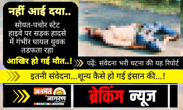 सड़क दुर्घटना है तो रोज होती है लेकिन आज जो दुर्घटना हुई बड़ी दुखद घटना थी क्योंकि दुर्घटना में एक युवक तड़पता रहा वाहन चालक और राहगीर देखकर निकलते रहे 1 घंटे तक गंभीर घायल युवक तड़पता रहा तड़प तड़प कर उसकी मौत हो गई । लेकिन राहगीरों ने या किसी भी वाहन चालक ने अपनी संवेदना नहीं दिखाई।