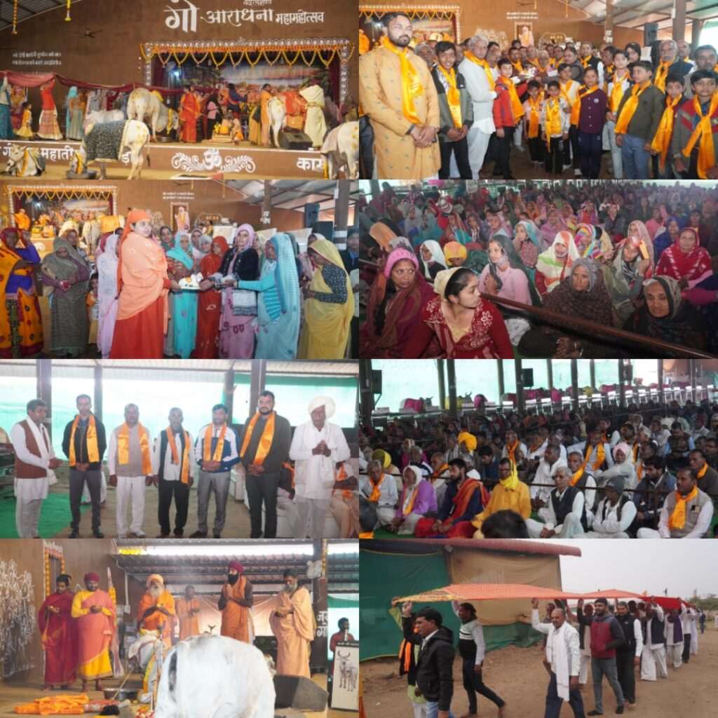 ⏩ 261 वे दिवस पर चुनरी यात्रा मध्यप्रदेश के आगर मालवा जिले से :: एक वर्षीय गोकृपा कथा के 261 वें दिवस पर चुनरी यात्रा मध्यप्रदेश के आगर मालवा जिले की नलखेड़ा तहसील के भैसोदा ग्राम में संचालित श्री रामकृष्ण गोशाला की और से ग्राम पंचायत के सरपंच महेश पाटीदार ,दीपक पाटीदार,महेश पाटीदार, पवन पाटीदार एवं जयनारायण पाटीदार के साथ ग्राम के सेंकड़ों पंच पटेल,युवा शक्ति एवं मातृशक्ति ने अपने परिवार की और से सम्पूर्ण विश्व के जन कल्याण के लिए गाजे बाजे के साथ भगवती गोमाता के लिए चुनरी लेकर पधारे और कथा मंच पर विराजित भगवती गोमाता को चुनरी ओढ़ाई एवं गोमाता का पूजन कर स्वामी गोपालानंद सरस्वती महाराज से आशीर्वाद लिया और अंत में सभी ने गो पूजन करके यज्ञशाला की परिक्रमा एवं गोष्ठ में गोसेवा करके सभी ने गोव्रती महाप्रसाद ग्रहण किया।