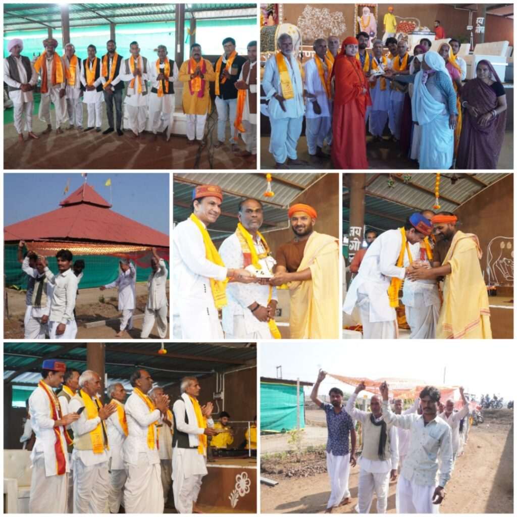 ⏩ 287 वे दिवस पर चुनरी यात्रा मध्यप्रदेश के आगर मालवा जिले से :: एक वर्षीय गोकृपा कथा के 287 वें दिवस पर चुनरी यात्रा मध्यप्रदेश के आगर मालवा जिले की सुसनेर तहसील के कंवराखेड़ी ग्रामवासी अपने सम्पूर्ण ग्राम की और से सम्पूर्ण विश्व के जन कल्याण के लिए गाजे बाजे के साथ भगवती गोमाता के लिए चुनरी लेकर पधारे और कथा मंच पर विराजित भगवती गोमाता को चुनरी ओढ़ाई एवं गोमाता का पूजन कर स्वामी गोपालानंद सरस्वती महाराज से आशीर्वाद लिया और अंत में सभी ने गो पूजन करके यज्ञशाला की परिक्रमा एवं गोष्ठ में गोसेवा करके सभी ने गोव्रती महाप्रसाद ग्रहण किया।