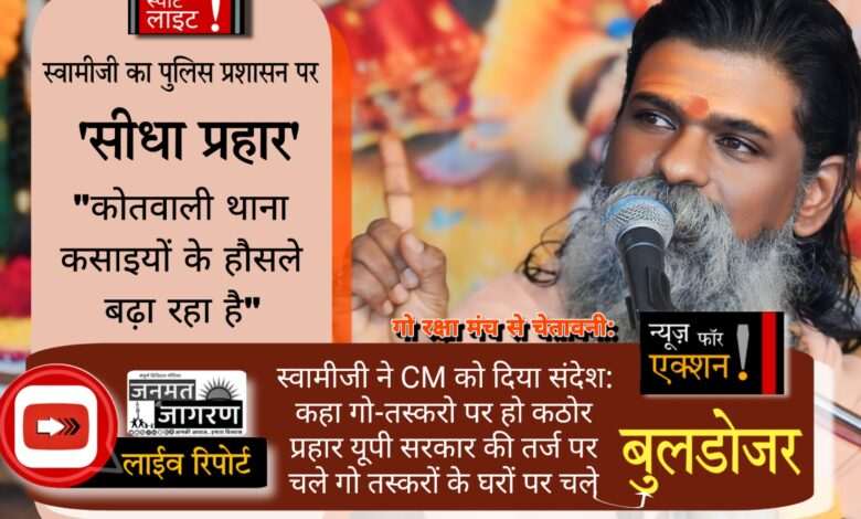 ⏩ स्वामीजी का पुलिस प्रशासन पर सीधा प्रहार: "कोतवाली थाना कसाइयों के हौसले बढ़ा रहा है"