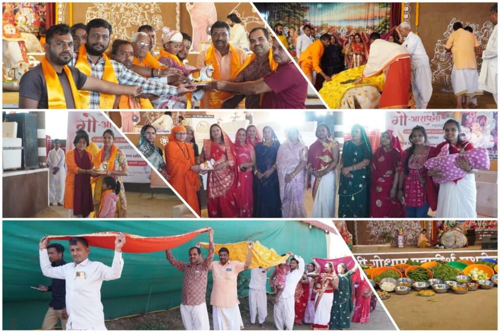 महामहोत्सव के 334वें दिवस पर राजस्थान के कोटा जिले (रामगंजमंडी) से श्रद्धालु भगवती गोमाता के लिए चुनरी यात्रा लेकर गो अभयारण्य पहुंचे।