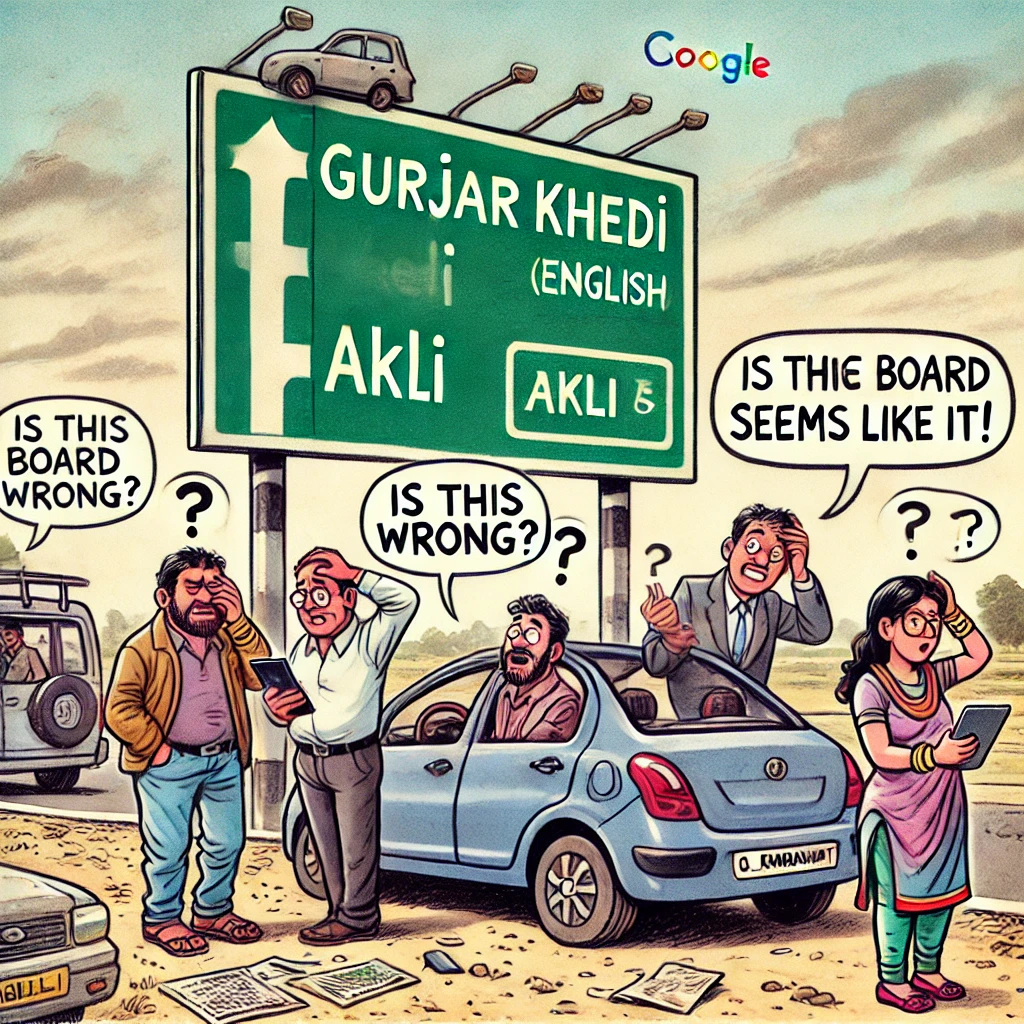 असल में, जिसे ‘गुर्जर खेड़ी’ बताकर बोर्ड ठोक दिया गया है, वो गांव असल में आकली है! अब जो भी मासूम इस बोर्ड के सहारे अपने सफर की दिशा तय करता है, वह गुर्जर खेड़ी पहुंचने की बजाय आकली के खेतों में घूमता नजर आता है।