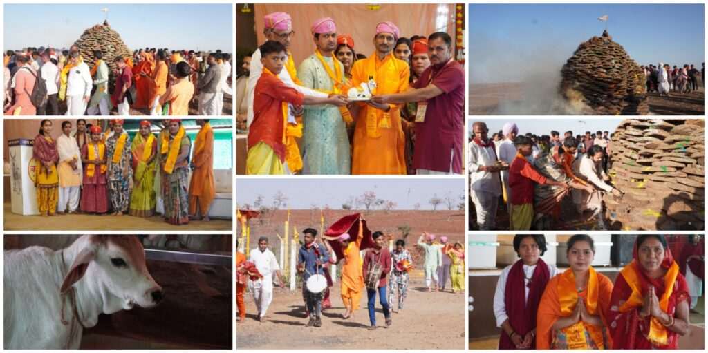 विश्व के प्रथम गो-अभयारण्य में 14 मार्च को संध्या 5:30 बजे केशव टेकरी पर वैदिक मंत्रोच्चार के साथ होलिका दहन किया गया।