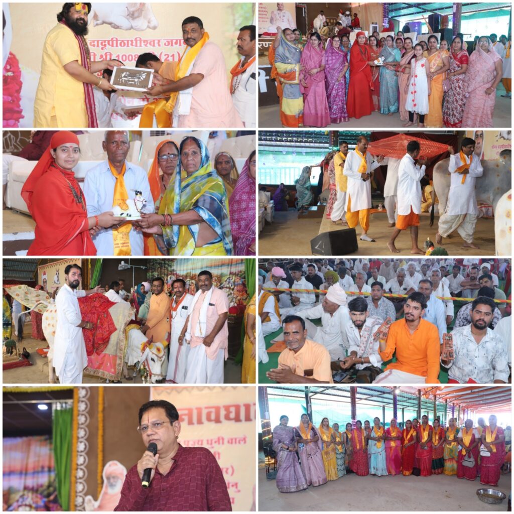 वृन्दावनधाम से पधारे संगीत सम्राट पूज्य धनवंतरी दास जी महाराज ने भाव विभोर कर देने वाले शब्दों में कहा कि “संत महात्मा आपसे गोसेवा करवाकर आपके अधर्म को नष्ट करते हैं।” उन्होंने कहा कि “पृथ्वी के सात स्तंभों में गाय माता प्रधान स्तंभ हैं। गाय का संरक्षण पृथ्वी की स्थिरता का प्रतीक है।” उन्होंने बताया कि “भगवान श्रीकृष्ण जिनकी सेवा करते थे, वह गाय – यदि हमें सेवा करने का अवसर मिले, तो यह हमारा परम सौभाग्य है।” साथ ही उन्होंने एक अनुपम दृष्टांत प्रस्तुत करते हुए कहा कि “जैसे प्रभु श्रीराम के तुणीर में एक ही बाण होता था लेकिन वह प्रतिपल बढ़ता रहता था, वैसे ही दिया गया दान भी प्रतिपल फलित होता है।” उन्होंने कहा, “एकं सस्यं दशं बीजं, दानं शतगुणं भवेत्।” – यानी एक दाना दस गुना, लेकिन दान सौ गुना फल देता है।