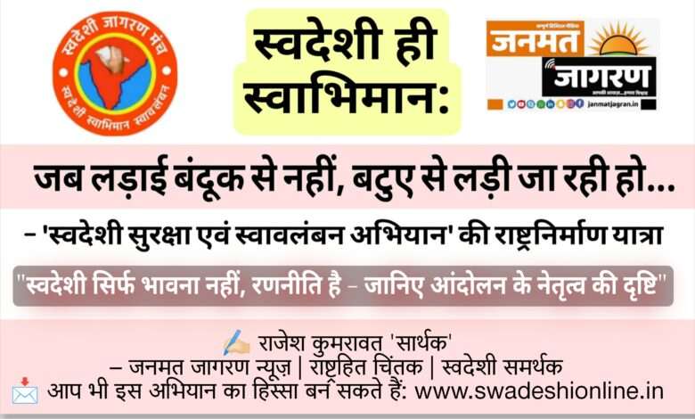 स्वदेशी ही स्वाभिमान: जब लड़ाई बंदूक से नहीं, बटुए से लड़ी जा रही हो… “स्वदेशी सिर्फ भावना नहीं, रणनीति है – जानिए आंदोलन के नेतृत्व की दृष्टि”