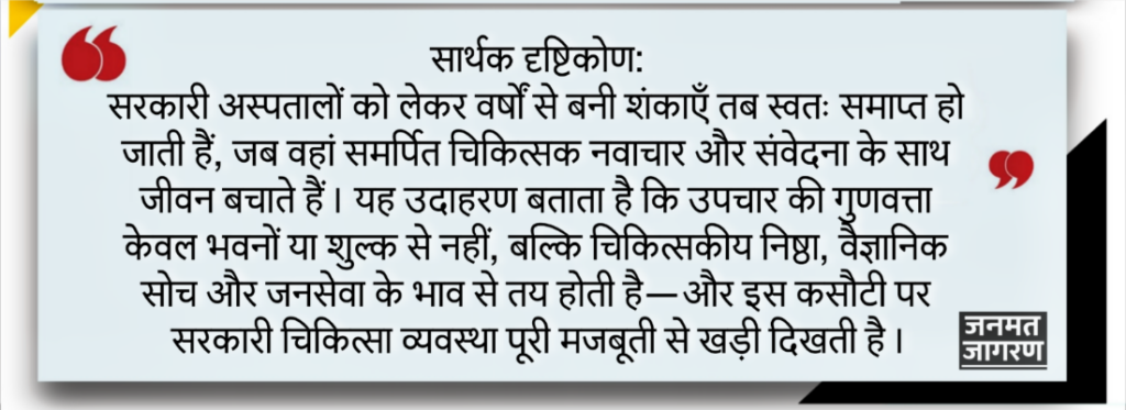 उनका कार्य यह सिद्ध करता है कि सरकारी अस्पताल केवल इलाज के केंद्र नहीं, बल्कि नवाचार और उम्मीद के संस्थान भी बन सकते हैं।