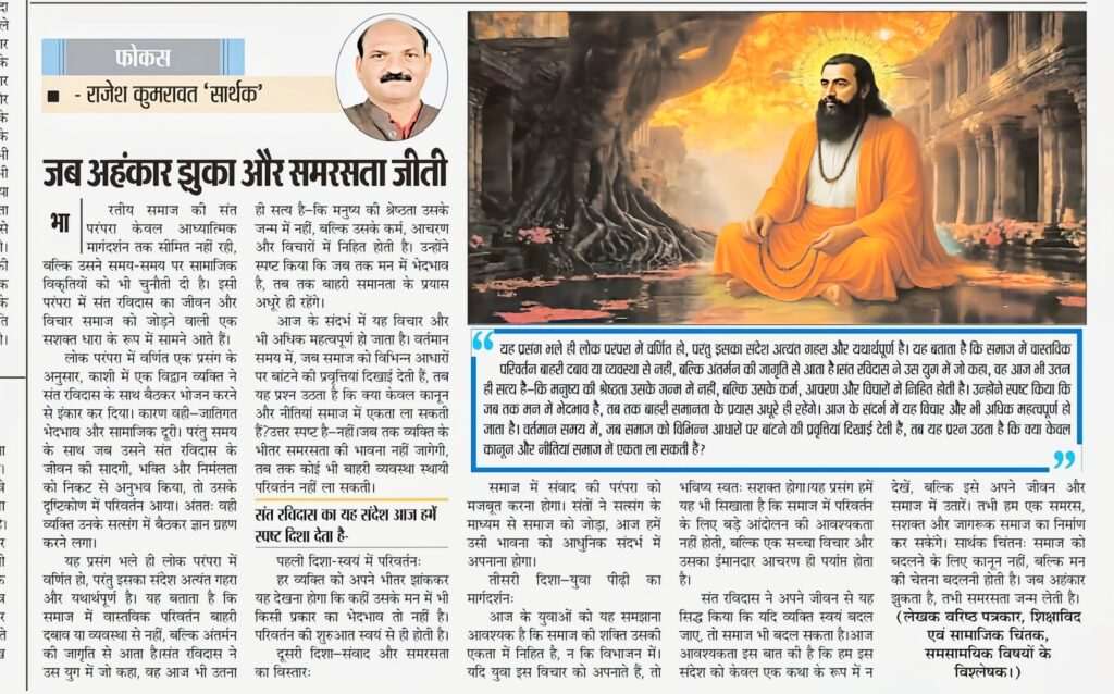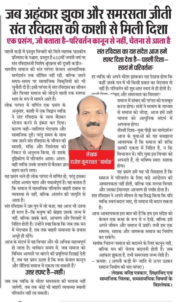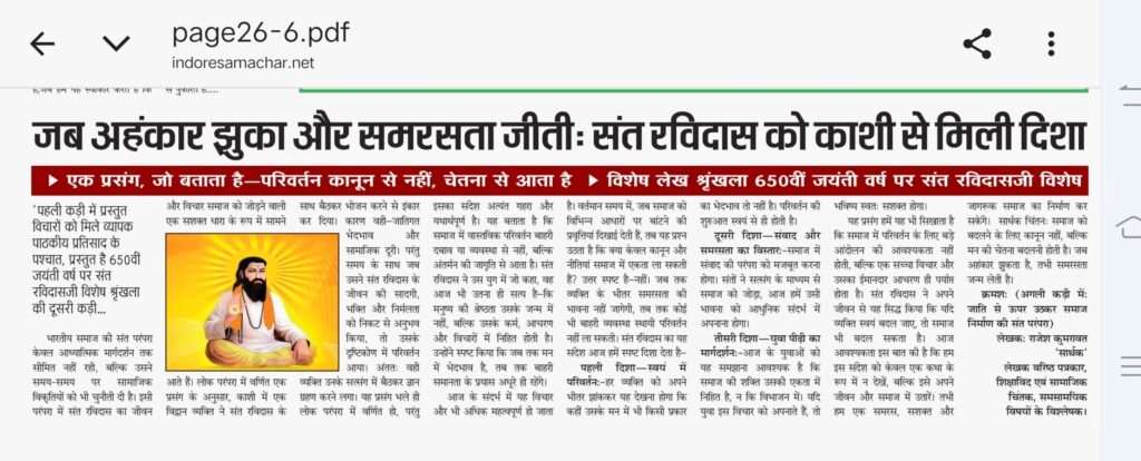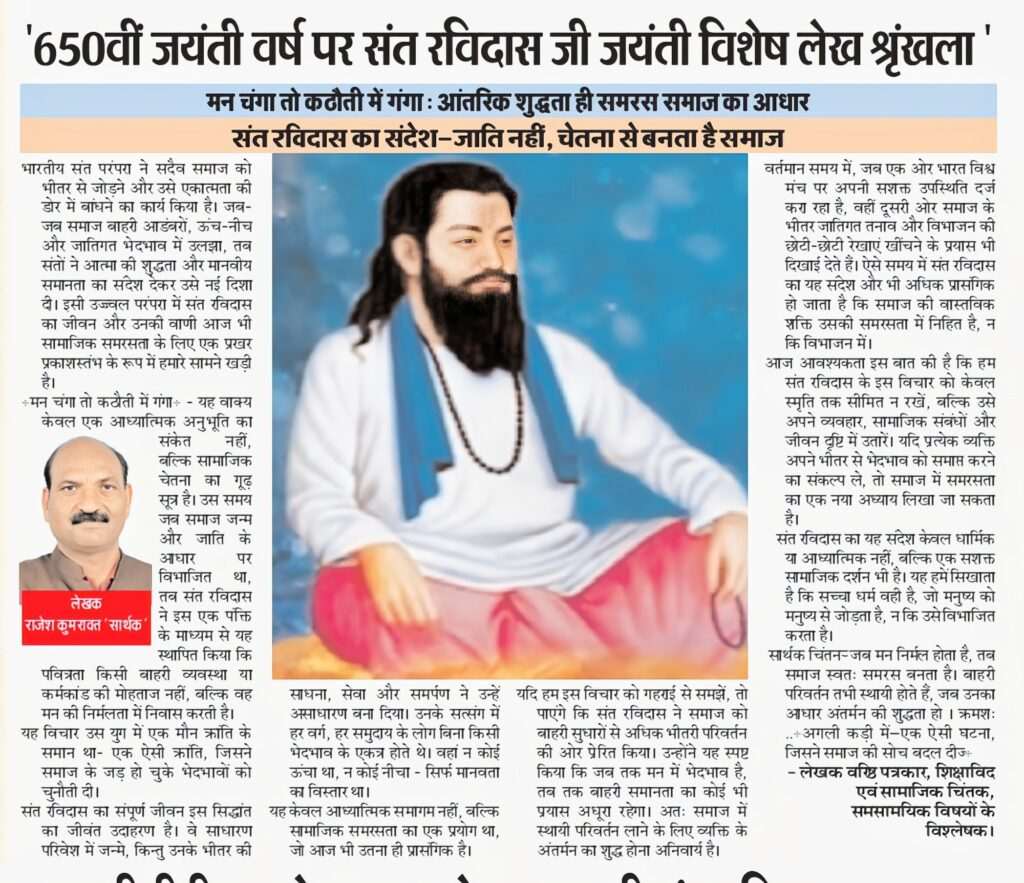 “650वीं जयंती वर्ष पर संत रविदास जी पर विशेष लेख श्रृंखला “– विभिन्न समाचार पत्रों में प्रकाशित लेख (पूरी कड़ी पढें )