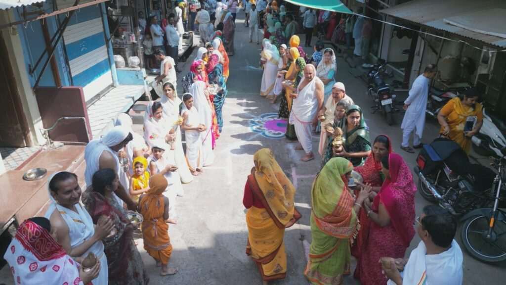 “हे स्वामी नमोस्तु… नमोस्तु… नमोस्तु, अत्र… अत्र… तिष्ठो… तिष्ठो…” के गूंजते मंत्रोच्चार से संपूर्ण नगर आध्यात्मिक ऊर्जा से भर उठा। मार्ग को आकर्षक रंगोलियों से सजाया गया, जिसने इस आयोजन को और अधिक भव्य बना दिया।