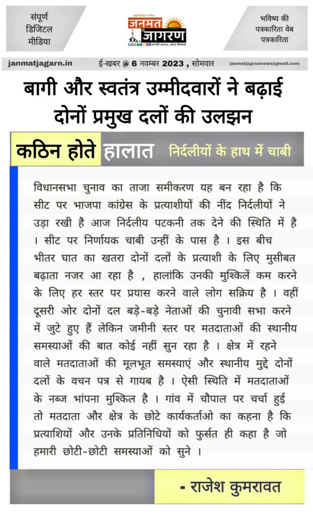 कठिन होते हालात – निर्दलीयों के हाथ में चाबी , पटकनी देने की स्थिति में निर्दलीय