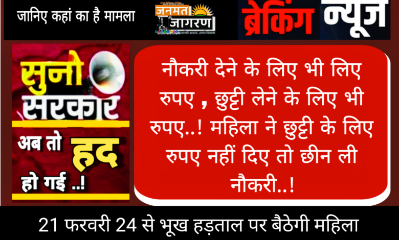 •• हद हो गई सरकार : नौकरी देने के लिए भी रुपए छुट्टी लेने के लिए भी रुपए ..! महिला ने छुट्टी के लिए रुपए नहीं दिए तो छीन ली नौकरी : 21 फरवरी से भुख हड़ताल पर बैठेगी महिला