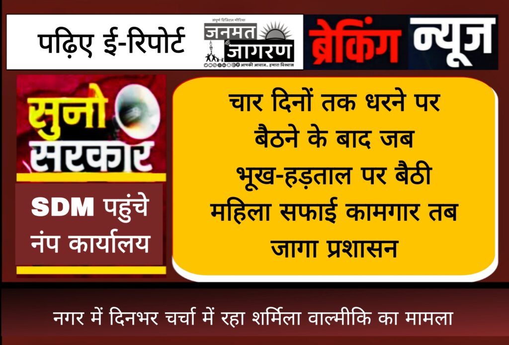 - ЁЯФ┤рд╕реЛрдпрддрдХрд▓рд╛ рдореЗрдВ рдЪрд╛рд░ рджрд┐рдиреЛрдВ рддрдХ рдзрд░рдиреЗ рдкрд░ рдмреИрдардиреЗ рдХреЗ рдмрд╛рдж рдЬрдм рдЕрдирд╢рди рдкрд░ рдмреИрдареА рдорд╣рд┐рд▓рд╛ рд╕рдлрд╛рдИ рдХрд╛рдордЧрд╛рд░ рддрдм рдЬрд╛рдЧрд╛ рдкреНрд░рд╢рд╛рд╕рди – рдПрд╕рдбреАрдПрдо рддрд╣рд╕реАрд▓рджрд╛рд░ рдкрд╣реБрдВрдЪреЗ рдЬрд╛рдВрдЪ рдХреЗ рд▓рд┐рдП