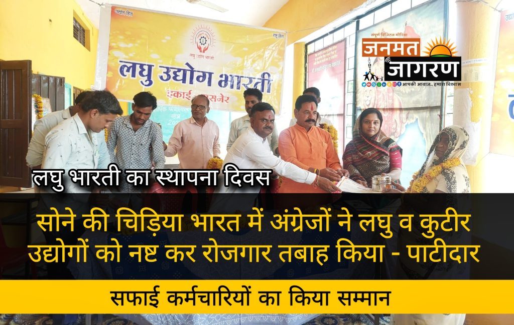 рдореБрдЦреНрдп рдЕрддрд┐рдерд┐ рд░рд╛рд╖реНрдЯреНрд░реАрдп рд╕реНрд╡рдпрдВрд╕реЗрд╡рдХ рд╕рдВрдШ рдХреЗ рдЦрдВрдб рд╕рдВрдШрдЪрд╛рд▓рдХ рджреНрд╡рд╛рд░рдХрд┐рд▓рд╛рд▓ рдкрд╛рдЯреАрджрд╛рд░, рд▓рдШреБ рдЙрджреНрдпреЛрдЧ рднрд╛рд░рддреА рдЧреНрд░рд╛рдо рд╢рд┐рд▓реНрдкреА рдкреНрд░рдХреЛрд╖реНрда рдХреЗ рдХреНрд╖реЗрддреНрд░реАрдп рд╕рдВрдпреЛрдЬрдХ рд░рд╛рдЬреЗрд╢ рджреЗрд╢рдореБрдЦ, рдорд╣рд┐рд▓рд╛ рдЗрдХрд╛рдИ рдЕрдзреНрдпрдХреНрд╖ рдкреНрд░рддрд┐рдЬреНрдЮрд╛ рднрд╛рд╡рд╕рд╛рд░ рд╡ рд╕рдЪрд┐рд╡ рдЕрд░реНрдЪрдирд╛ рдЬреЛрд╢реА рдордВрдЪрд╛рд╕рд┐рди рдереЗред рдореБрдЦреНрдп рдЕрддрд┐рдерд┐ рджреНрд╡рд╛рд░рд╛рдХреАрд▓рд╛рд▓ рдкрд╛рдЯреАрджрд╛рд░ рдиреЗ рдЕрдкрдиреЗ рдЙрджреНрдмреЛрдзрди рдореЗрдВ рдмрддрд╛рдпрд╛ рдХрд┐ рднрд╛рд░рдд рдореЗрдВ рдЕрдВрдЧреНрд░реЗрдЬреЛрдВ рдХреЗ рдЖрдиреЗ рдХреЗ рдкрд╣рд▓реЗ рд▓рдШреБ рд╡ рдХреБрдЯреАрд░ рдЙрджреНрдпреЛрдЧ рд╣реБрдЖ рдХрд░рддреЗ рдереЗред рднрд╛рд░рдд рдХреЛ рд╕реЛрдиреЗ рдХреА рдЪрд┐рдбрд╝рд┐рдпрд╛ рдРрд╕реЗ рд╣реА рдирд╣реАрдВ рдХрд╣рд╛ рдЬрд╛рддрд╛ рдерд╛ред рд▓реЗрдХрд┐рди рдЕрдВрдЧреНрд░реЗрдЬреЛ рджреНрд╡рд╛рд░рд╛ рд▓рдШреБ рдПрд╡рдВ рдХреБрдЯреАрд░ рдЙрджреНрдпреЛрдЧреЛрдВ рдХреЛ рдирд╖реНрдЯ рд╡ рддрдмрд╛рд╣ рдХрд┐рдпрд╛ рдЧрдпрд╛ред рдЬрд┐рд╕рд╕реЗ рд░реЛрдЬрдЧрд╛рд░ рднреА рддрдмрд╛рд╣ рд╣реБрдЖред рднрд╛рд░рдд рдХрд╛ рд╕реВрддреА рдХрдкрдбрд╝реЗ рдХрд╛ рдЙрджреНрдпреЛрдЧ рд╡рд┐рд╢реНрд╡ рдореЗрдВ рд╕рд┐рд░рдореЛрд░ рд╣реБрдЖ рдХрд░рддрд╛ рдерд╛ред рдЖрдЬрд╛рджреА рдХреЗ рдмрд╛рдж рдкреБрдирдГ рд▓рдШреБ рд╡ рдХреБрдЯреАрд░ рдЙрджреНрдпреЛрдЧреЛрдВ рдХреЛ рд╕реНрдерд╛рдкрд┐рдд рдХрд░рдиреЗ рдХреЗ рд▓рд┐рдП рдлрд┐рд░ рд╕реЗ рдорд╛рдВрдЧ рдЙрдардиреЗ рд▓рдЧреАред