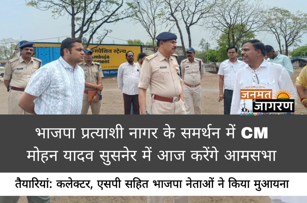 рдЬрдирдордд рдЬрд╛рдЧрд░рдг @ рд╕реБрд╕рдиреЗрд░ред рд▓реЛрдХрд╕рднрд╛ рдЪреБрдирд╛рд╡ рдХреЗ рдорджреНрджреЗрдирдЬрд░ рд░рд╛рдЬрдЧреЭ рд╕рдВрд╕рджреАрдп рдХреНрд╖реЗрддреНрд░ рдХреЗ рднрд╛рдЬрдкрд╛ рдкреНрд░рддреНрдпрд╛рд╢реА рд░реЛрдбрдорд▓ рдирд╛рдЧрд░ рдХреЗ рд╕рдорд░реНрдерди рдореЗрдВ рд░рд╡рд┐рд╡рд╛рд░ рдХреЛ рдкреНрд░рджреЗрд╢ рдХреЗ рдореБрдЦреНрдпрдордВрддреНрд░реА рдореЛрд╣рди рдпрд╛рджрд╡ рдЪреБрдирд╛рд╡реА рдЖрдо рд╕рднрд╛ рдХреЛ рд╕рдореНрдмреЛрдзрд┐рдд рдХрд░рдиреЗ рдХреЗ рд▓рд┐рдП рд╕реБрд╕рдиреЗрд░ рдкрд╣реБрдЪреЗрдВрдЧреЗред рд╕рднрд╛ рдХрд╛ рдЖрдпреЛрдЬрди рдорд┐рдбрд┐рд▓ рд╕реНрдХреВрд▓ рдЧреНрд░рд╛рдЙрдВрдб рдореЗрдВ рджреЛрдкрд╣рд░ 12 рдмрдЬреЗ рд╕реЗ рд╣реЛрдЧрд╛ред рд╕рднрд╛ рдХреЛ рд▓реЗрдХрд░ рддреИрдпрд╛рд░рд┐рдпрд╛рдВ рдкреВрд░реНрдг рдХрд░ рд▓реА рдЧрдИ рд╣реИред рдЖрдорд╕рднрд╛ рдХреА рддреИрдпрд╛рд░рд┐рдпреЛрдВ рдХреЛ рд▓реЗрдХрд░ рд╢рдирд┐рд╡рд╛рд░ рдХреЛ рдЬрд┐рд▓рд╛ рдХрд▓реЗрдХреНрдЯрд░ рдХрд▓реЗрдХреНрдЯрд░ рд░рд╛рдШрд╡реЗрдВрджреНрд░рд╕рд┐рдВрд╣ рдПрд╡рдВ рдПрд╕рдкреА рд╡рд┐рдиреЛрдж рдХреБрдорд╛рд░ рд╕рд┐рдВрд╣ рдиреЗ рд░рд╛рдЬрд╕реНрд╡, рдкреБрд▓рд┐рд╕, рдПрдордкреАрдИрдмреА рдПрд╡рдВ рдирдЧрд░ рдкрд░рд┐рд╖рдж рдХреЗ рдЕрдорд▓реЗ рдХреЗ рд╕рд╛рде рд╕рднрд╛ рд╕реНрдерд▓ рдХрд╛ рдореБрдЖрдпрдирд╛ рдХрд┐рдпрд╛ред рдЗрд╕ рджреМрд░рд╛рди рд╡реНрдпрд╡рд╕реНрдерд╛рдУрдВ рдХреЛ рд▓реЗрдХрд░ рдЖрд╡рд╢реНрдпрдХ рдирд┐рд░реНрджреЗрд╢ рднреА рджрд┐рдПред