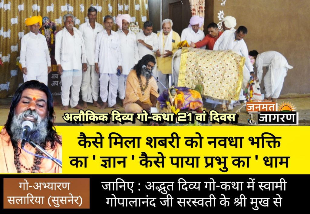 рдЬрдирдордд рдЬрд╛рдЧрд░рдг @ рд╕реБрд╕рдиреЗрд░ред рдЗрд╕ рд╕рдВрд╕рд╛рд░ рдореЗрдВ рдЧреЛрдорд╛рддрд╛ рдЬреИрд╕рд╛ рдХреЛрдИ рд╕рдиреНрдд рдирд╣реАрдВ рд╣реИ рдЕрд░реНрдерд╛рдд рдЧреЛрдорд╛рддрд╛ рдХреЗ рд╕рдорд╛рди рдЗрд╕ рд╕рдВрд╕рд╛рд░ рдореЗрдВ рдХреЛрдИ рдЙрдкрдХрд╛рд░реА рдЬреАрд╡ рдирд╣реАрдВ рд╣реИ ред рдЬрд┐рд╕рдХрд╛ рдкреНрд░рддреНрдпрдХреНрд╖ рдЙрджрд╛рд╣рд░рдг рдорд╛рдВ рд╢рдмрд░реА рд╡ рднрдЧрд╡рд╛рди рд░рд╛рдо рдХрд╛ рдорд┐рд▓рди рд╣реИ рдХреНрдпреЛрдВрдХрд┐ рднрдЧрд╡рддреА рдЧреЛрдорд╛рддрд╛ рдХреА рд╕реЗрд╡рд╛ рд╕реЗ рд╣реА рдорд╛рдВ рд╢рдмрд░реА рдиреЗ рдирд╡рдзрд╛ рднрдХреНрддрд┐ рдХрд╛ рдЬреНрдЮрд╛рди рдкреНрд░рд╛рдкреНрдд рдХрд░ рдкреНрд░рднреБ рдХрд╛ рдзрд╛рдо рдкрд╛рдпрд╛ рд╣реИ рдЙрд╕реА рдкреНрд░рдХрд╛рд░ рднрдЧрд╡рддреА рдЧреЛрдорд╛рддрд╛ рднреА рдорд╛рдирд╡ рдХреЗ рдШрд░ рдкрд░ рдЙрд╕рдХреЗ рдЙрджреНрдзрд╛рд░ рдХреЗ рд▓рд┐рдП рджрд░рд┐рджреНрд░рддрд╛ рдХреЗ рд╡реЗрд╢ рдореЗрдВ рдЙрд╕рдХреЗ рджреНрд╡рд╛рд░ рдкрд░ рдЖрддреА рд╣реИ рдФрд░ рд╡рд╣ рд╕реВрдЦреЗ рдШрд╛рд╕ рдлреВрд╕ рд╕реЗ рдЕрдкрдирд╛ рдкреЗрдЯ рднрд░рдХрд░ рдорд╛рдирд╡ рдХреЛ рд╕реЗрд╡рд╛ рдХрд╛ рдЕрд╡рд╕рд░ рджреЗрддреА рд╣реИред рдЙрдХреНрдд рджрд┐рд╡реНрдп рдкреНрд░рд╡рдЪрди рд╕реЛрдорд╡рд╛рд░ рдХреЛ рдПрдХ рд╡рд░реНрд╖реАрдп рд╡реЗрджрд▓рдХреНрд╖рдгрд╛ рдЧреЛ рдЖрд░рд╛рдзрдирд╛ рдорд╣рд╛рдорд╣реЛрддреНрд╕рд╡ рдХреЗ 21 рд╡реЗрдВ рджрд┐рд╡рд╕ рдкрд░ рдЧреЛрдХрдерд╛ рдореЗрдВ рдкрдзрд╛рд░реЗ рд╢реНрд░реЛрддрд╛рдУрдВ рдХреЛ рд╕рдВрдмреЛрдзрд┐рдд рдХрд░рддреЗ рд╣реБрдП рдЧреНрд╡рд╛рд▓ рд╕рдиреНрдд рд╕реНрд╡рд╛рдореА рдЧреЛрдкрд╛рд▓рд╛рдирдВрдж рд╕рд░рд╕реНрд╡рддреА рдорд╣рд╛рд░рд╛рдЬ рдиреЗ рдХрд╣рд╛ ред рд╕реНрд╡рд╛рдореА рдЬреА рдиреЗ рдмрддрд╛рдпрд╛ рдХрд┐