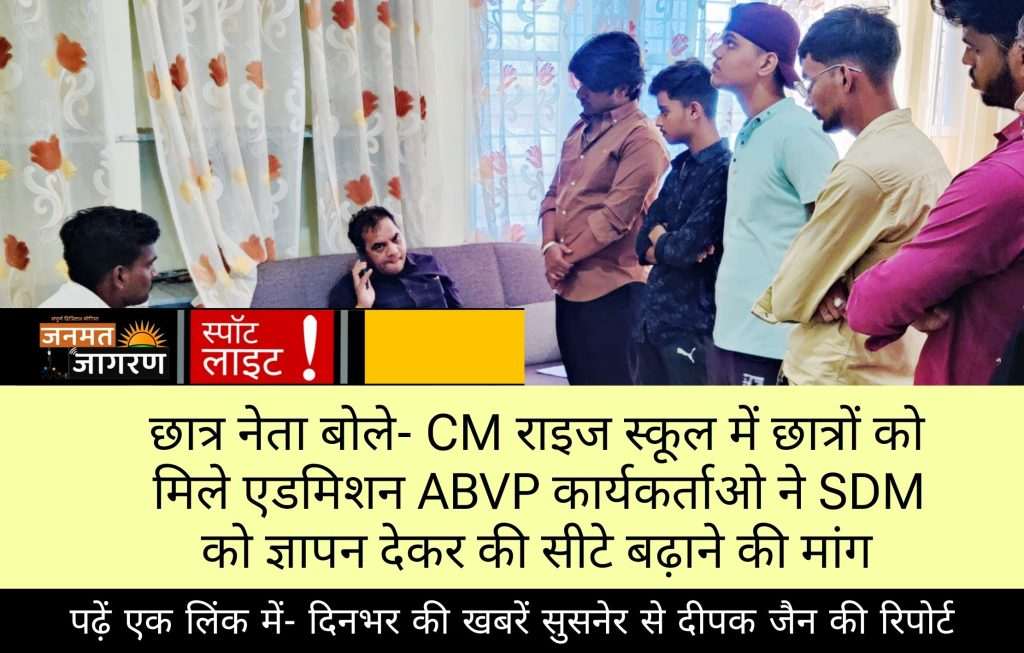 ЁЯЯардЫрд╛рддреНрд░ рдиреЗрддрд╛ рдмреЛрд▓реЗ- CM рд░рд╛рдЗрдЬ рд╕реНрдХреВрд▓ рдореЗрдВ рдЫрд╛рддреНрд░реЛрдВ рдХреЛ рдорд┐рд▓реЗ рдПрдбрдорд┐рд╢рди ABVP рдХрд╛рд░реНрдпрдХрд░реНрддрд╛рдУ рдиреЗ SDM рдХреЛ рдЬреНрдЮрд╛рдкрди рджреЗрдХрд░ рдХреА рд╕реАрдЯреЗ рдмреЭрд╛рдиреЗ рдХреА рдорд╛рдВрдЧ